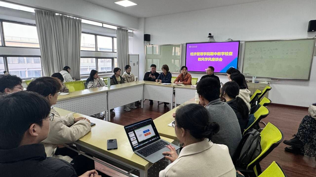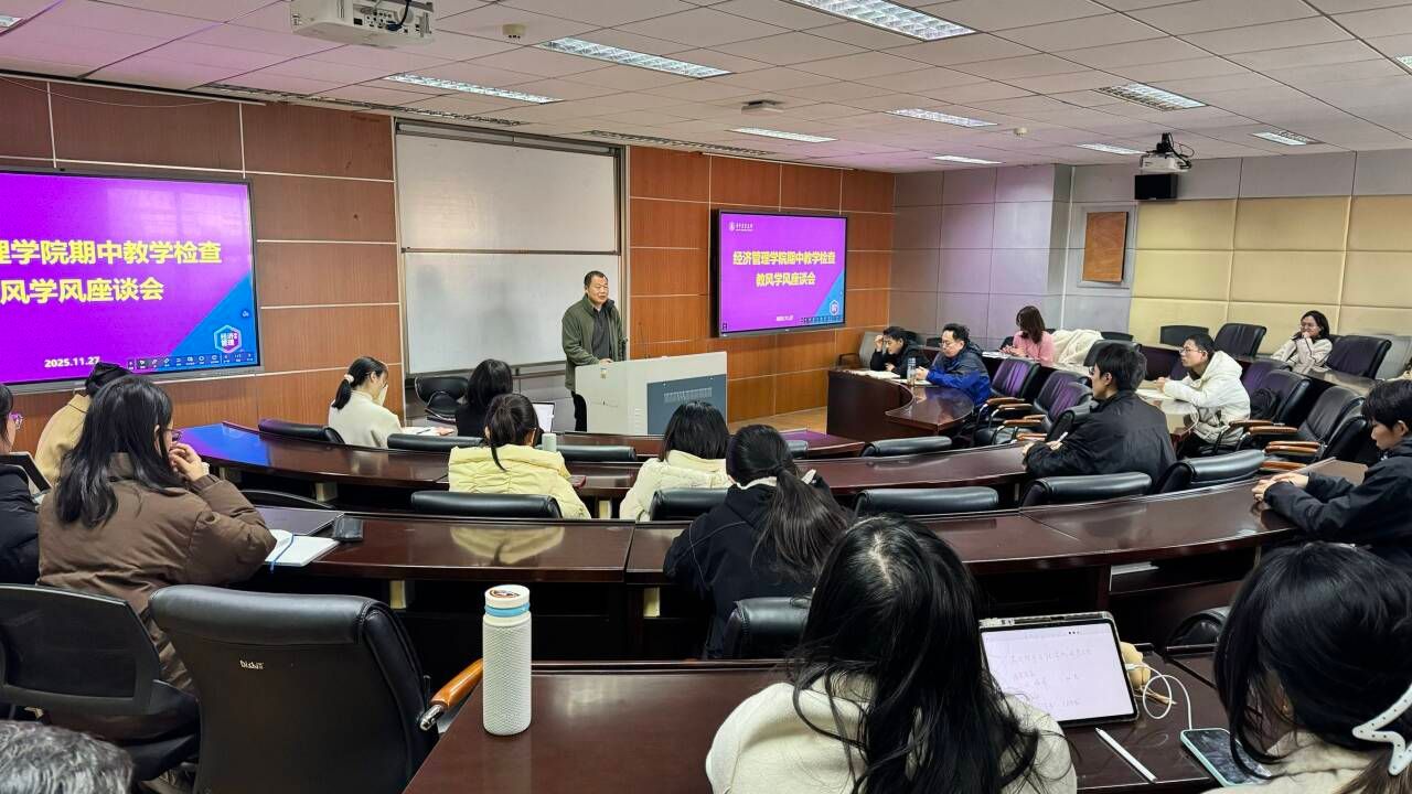 11月27日下午,经济管理学院在人文楼组织召开2025年秋季学期期中教风学风建设师生座谈会。本科生院实践管理处处长成协设、学校本科教学督导组组长任宇华应邀出席。