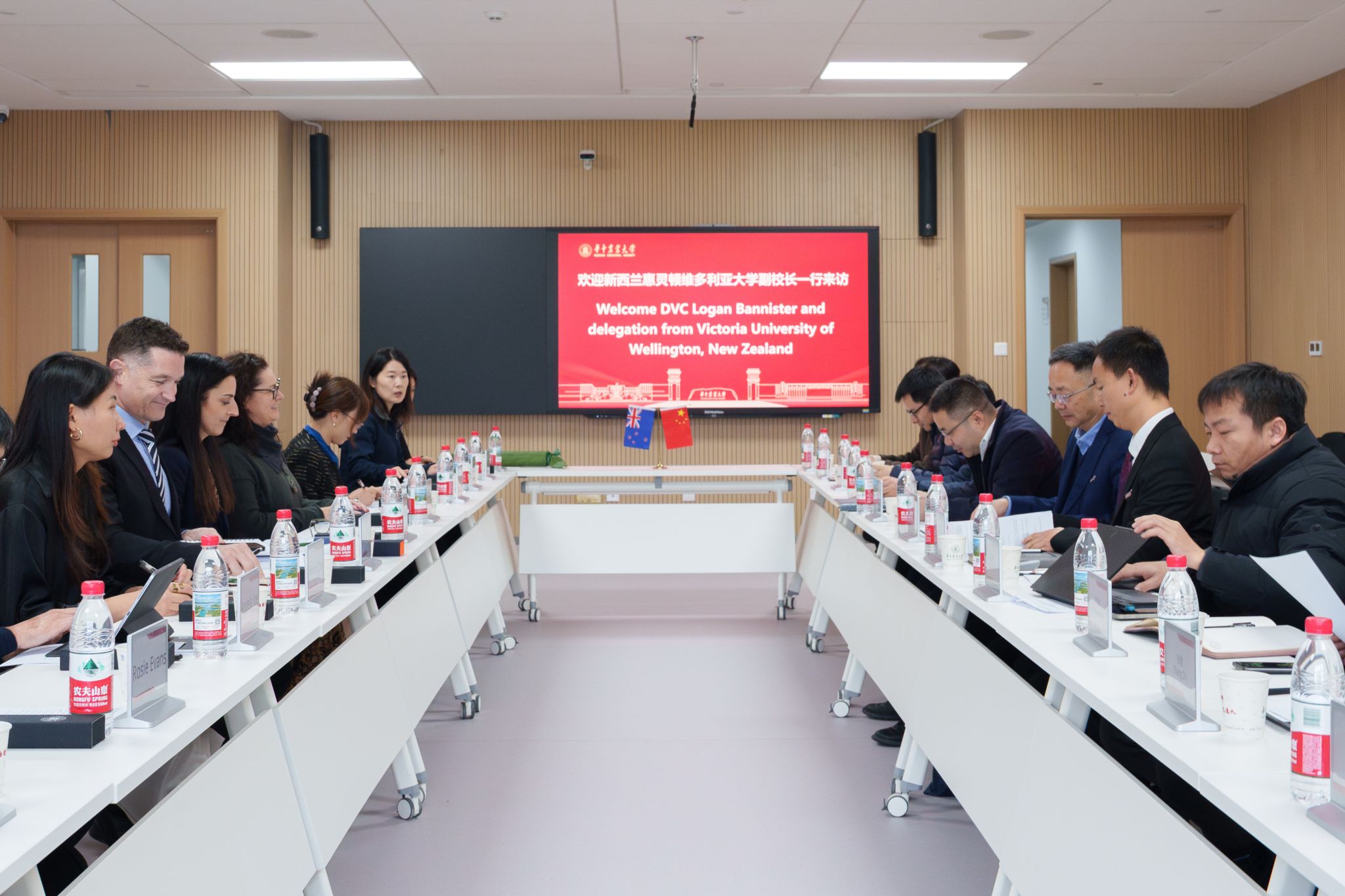 我校国际合作与交流部副部长曹震、惠灵顿维多利亚大学中国事务主任Juan Cao先后介绍了两校基本情况及国际交流合作整体进展。