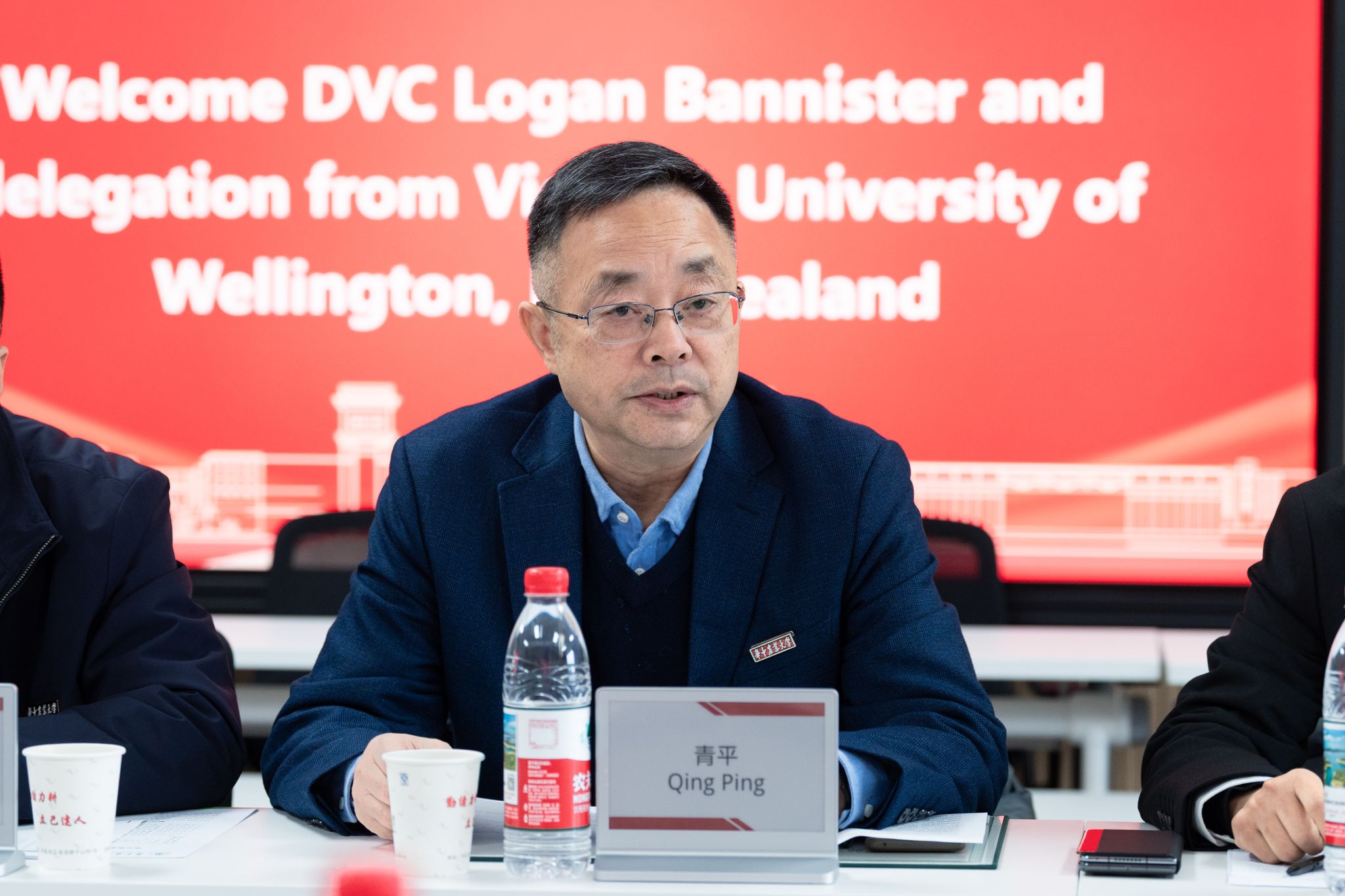 青平对惠灵顿维多利亚大学代表团到访表示热烈欢迎,回顾了两校自2023年签署合作备忘录以来,在研究生联合培养、攻读博士学位、教师访学等领域的交流合作成果。他希望以Logan Bannister副校长此次来访为契机,推动双方在信息工程、金融、市场营销、人文社科等领域开展学生联合培养、教师学术交流、科研协同创新等实质性合作,积极探讨两校中外合作办学模式。
