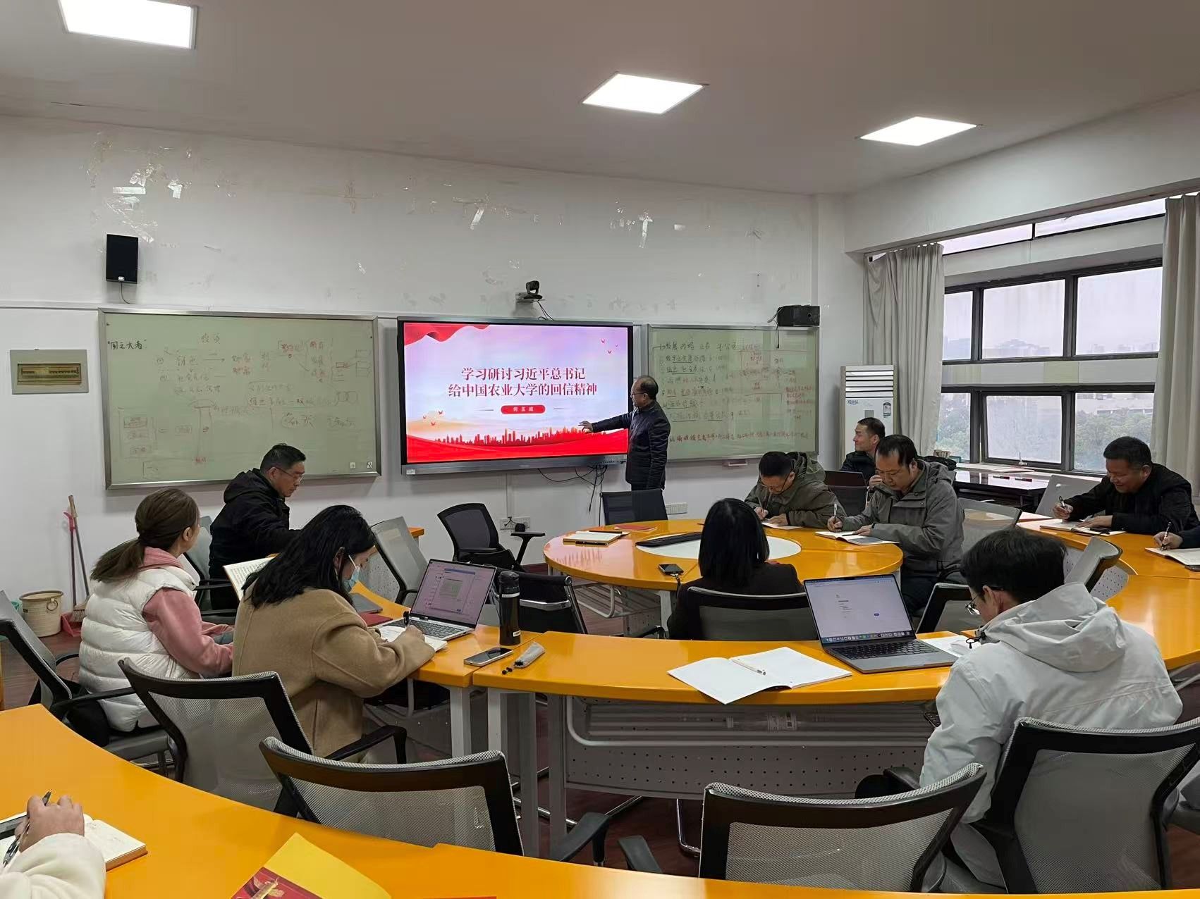 在理论学习环节,何玉成作“学习习近平总书记给中国农业大学的回信精神”专题领学,池韵佳以“学习领会党的二十届四中全会精神”为题进行分享,涂铭带领大家深入研读《习近平谈治国理政》第五卷相关内容。